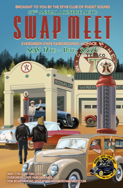 Phil will be at the 52nd Annual Monroe Auto Swap Meet in Monroe, Washington. Come visit with Phil in Building 604 who has tee shirts, polish, magazines, posters etc. along with some auto parts and pieces.