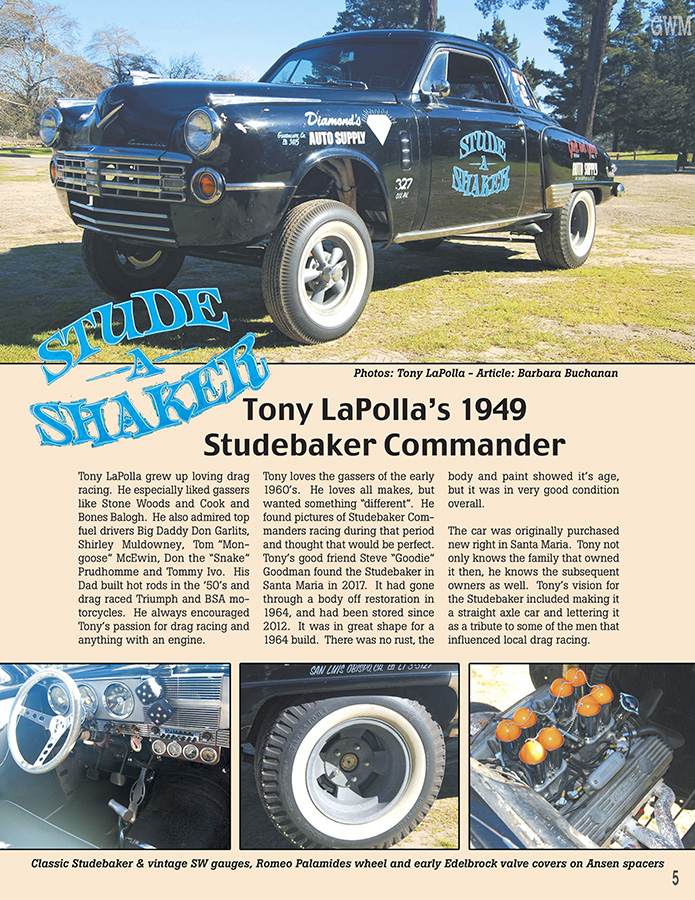 Gassers, read about Chevys, Ford, Anglias, Willys, Old's, Austin's, Henry J's, Our 14th year and continuing contributors, Jim Hume, Tom Wilford, Rob Stuart, The Olson's and many more.